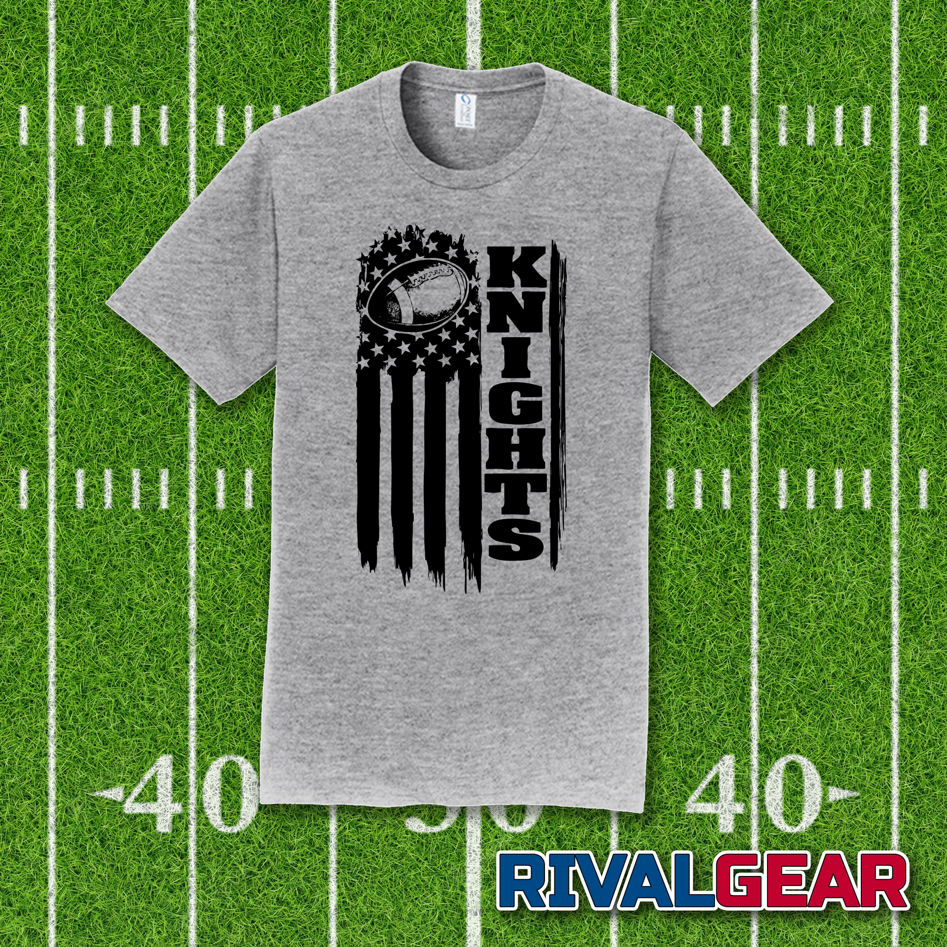 NOTE: Rival Gear is the only official place to order this Flag Football Knight t-shirts. All others are counterfeit knock offs -- we cannot be responsible for quality of product if ordered other than directly from RivalGearCo.com